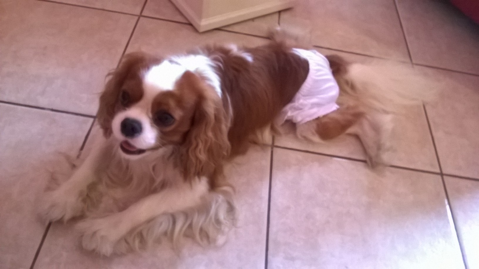 Nel tornare a casa mi sono fermata in farmacia a comprare le medicine e in un negozio per acquistare un capo intimo apposta per lui. Ne ho trovato un modello da bimba 3-6 mesi che calza a pennello… e rendendolo ancora più confortevole facendo un ritocco con le forbici per fare passare la codina!