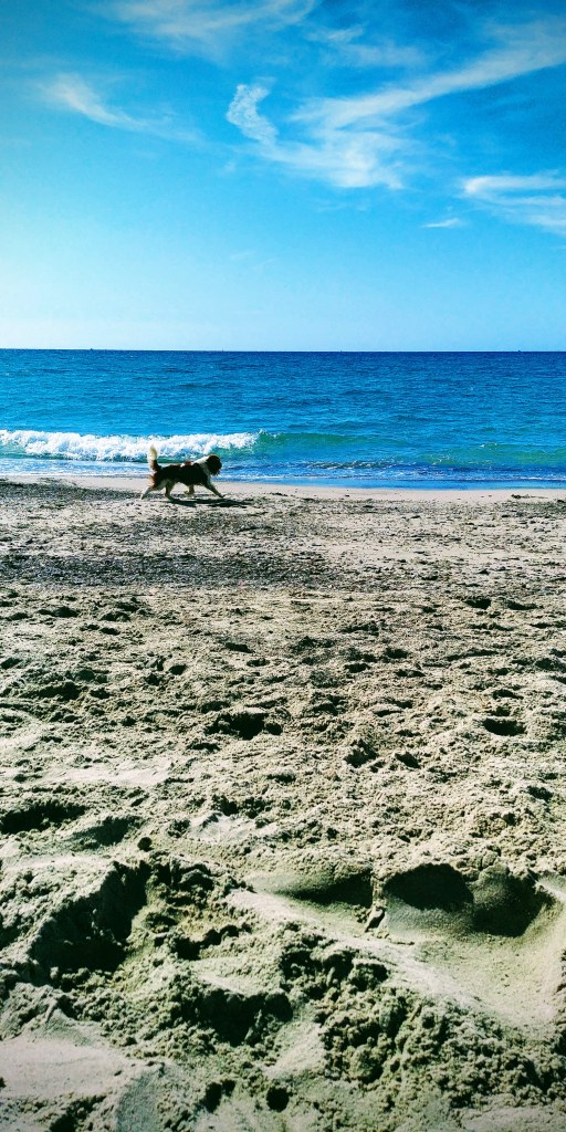 Il suo luogo preferito è stato il bagnasciuga in cui si è scatenato a fare passeggiate nell’acqua, pesca di sassi, scavate, rotolamenti nella sabbia e caccia alle libellule.