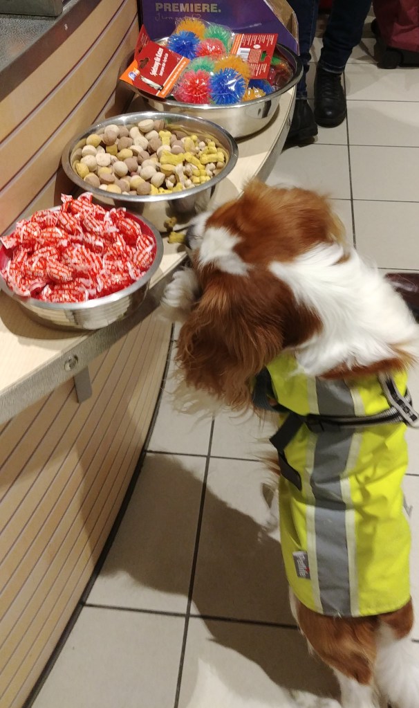 Successivamente, dopo aver conosciuto Chris lo hanno preso in simpatia e lo viziano ogni volta con coccole e biscottini che tengono in esposizione sul banco della cassa a disposizione dei clienti a quattro zampe.