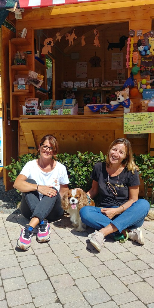 E’ diventato amico di Manu e Chiara, che lavorano nel bazaar e che ogni giorno gli danno biscottino e coccole.